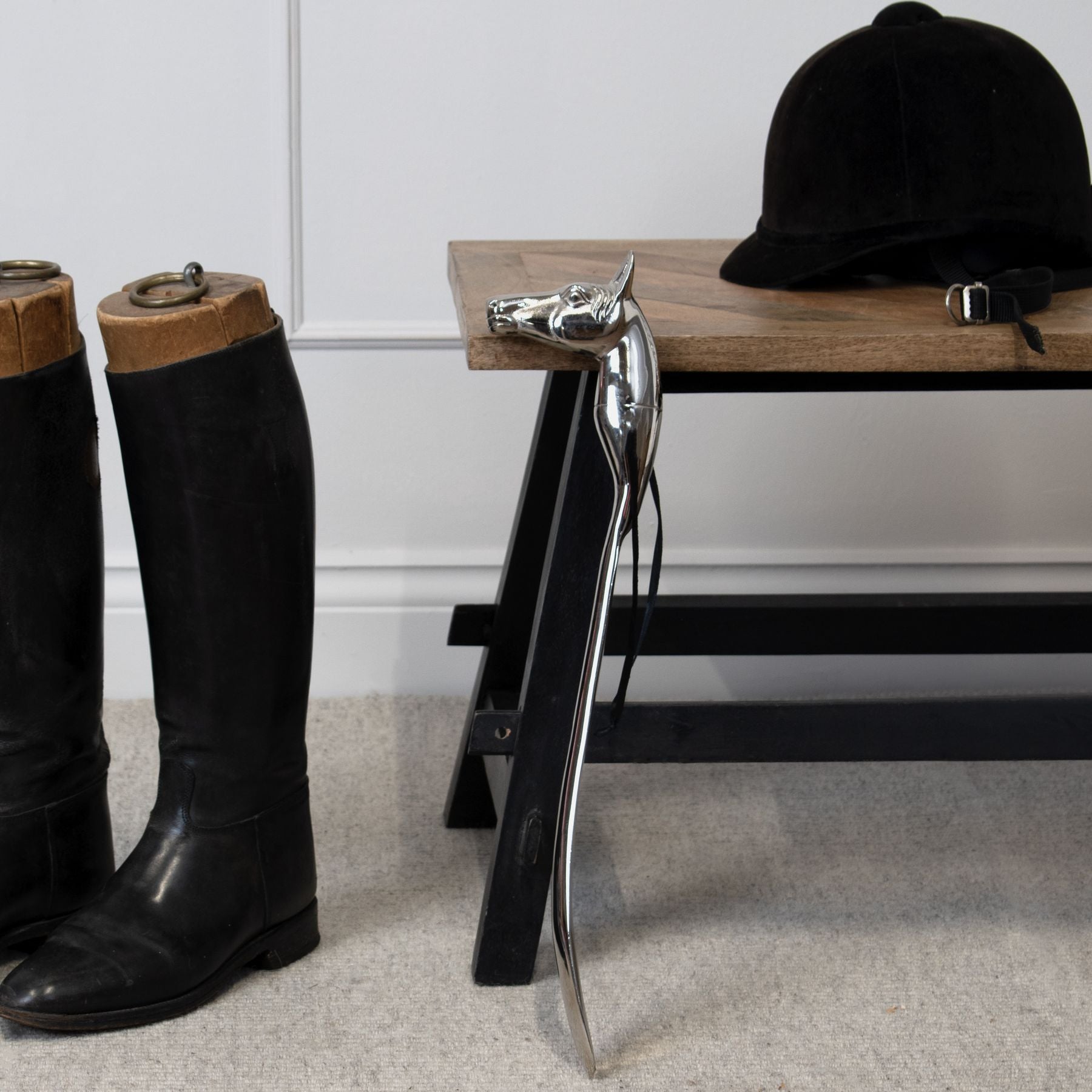 This impeccably crafted shoe horn marries practicality with refined aesthetics, showcasing a detailed equestrian motif that sets a new standard in functional accessories. The silver nickel finish creates an understated sheen that catches light beautifully while remaining durable for everyday use. The extended handle offers effortless utility while maintaining its decorative appeal through the thoughtfully proportioned horse head detail - a hallmark of this distinguished collection.